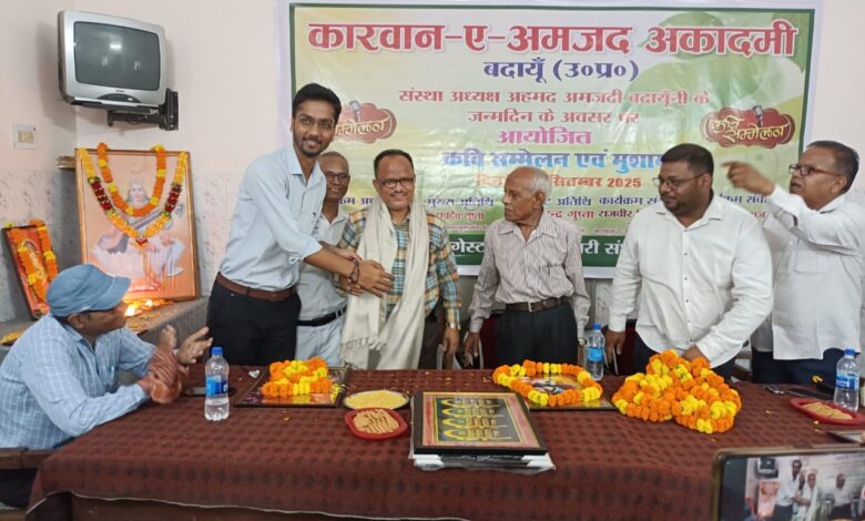 बदायूं – कारवांन ए अमजद अकादमी बदायूॅं उत्तर प्रदेश के तत्वावाधान में संस्था अध्यक्ष/संस्थापक अहमद अमजदी बदायूॅंनी के जन्मदिन के अवसर पर आयोजित कवि सम्मेलन एवं मुशायरा का आयोजन