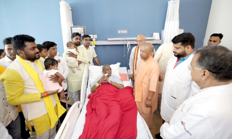 मुख्यमंत्री योगी ने अस्पताल पहुंचकर जाना मंत्री ओमप्रकाश राजभर का हाल।
