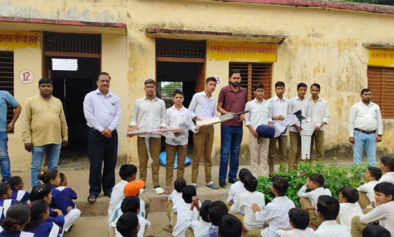 स्कूली बच्चों को खेलने के लिए दी गई क्रिकेट किट