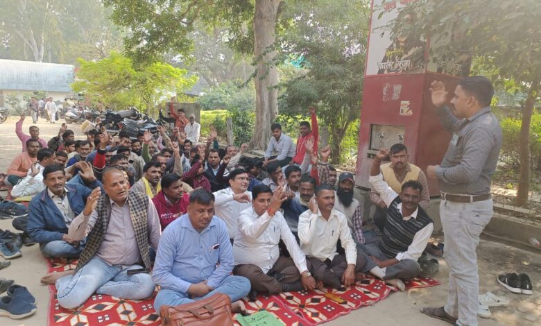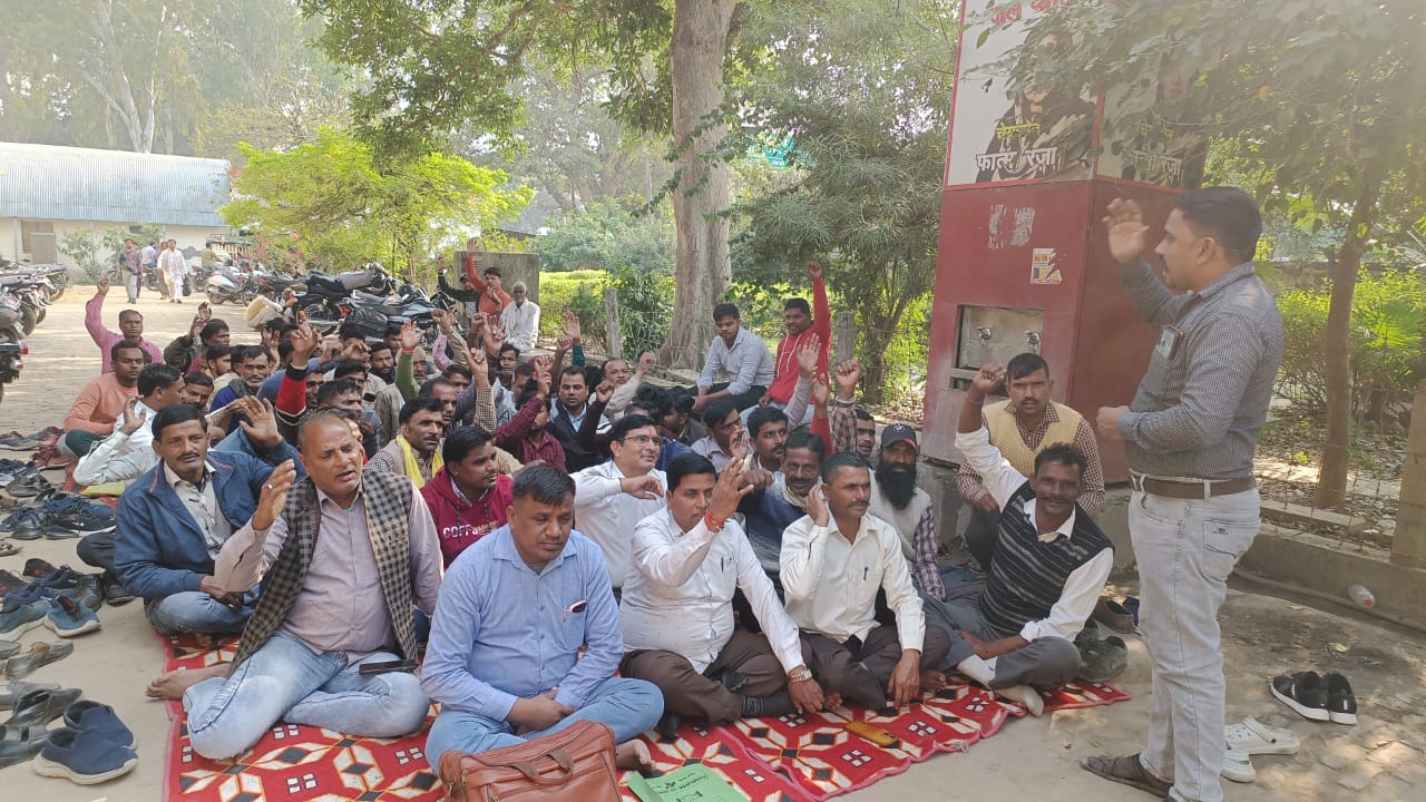 विद्युत संविदा कर्मचारीयों ने हटाए गए कर्मचारियों की वापसी एवंअन्य समस्याओं को लेकर अधिक्षण अभियंता कार्यालय पर की विरोध सभा