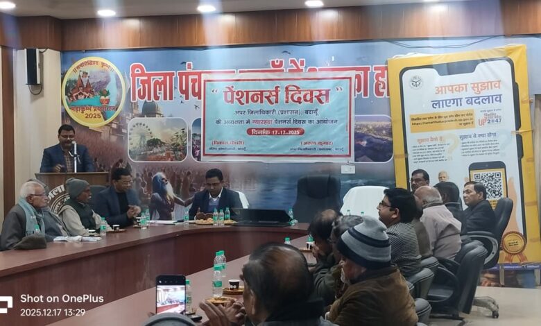 बदायूँ : 17 दिसम्बर। प्रमुख सचिव, वित्त, उ०प्र० शासन, लखनऊ के अनुपालन में बुधवार को अपर जिलाधिकारी प्रशासन श्री अरूण कुमार की अध्यक्षता में जिला परिषद के सभागार कक्ष में पेंशनर्स दिवस का आयोजन किया गया, जिसमें जनपद के समस्त कार्यालयाध्यक्षों, उनके प्रतिनिधियों एवं जनपद के सिविल, बेसिक शिक्षा, माध्यमिक शिक्षा, विद्युत व पुलिस पेंशनर्स यूनियन के पदाधिकारियों द्वारा प्रतिभाग किया गया।