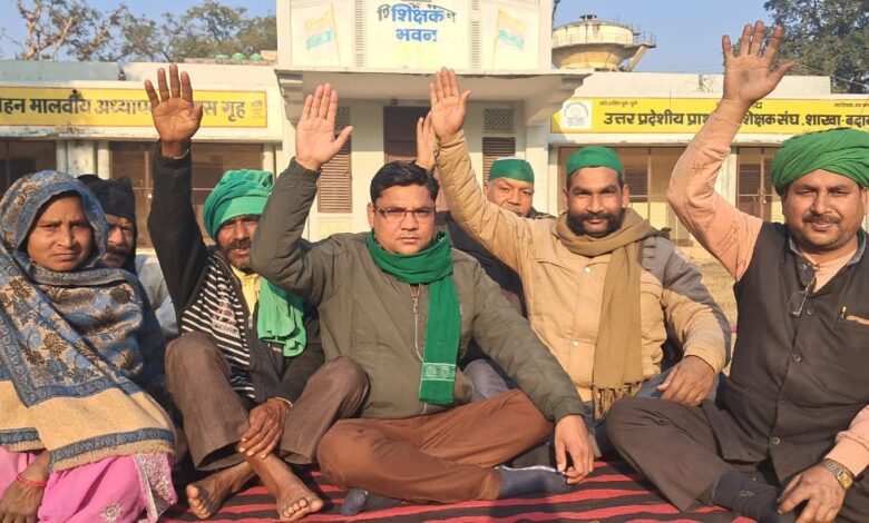 बदायूँ। भारतीय किसान यूनियन चढूनी का अवैध कब्जे को लेकर धरना मालवीय आवास ग्रह पर तीसरे दिन भी जारी रहा।