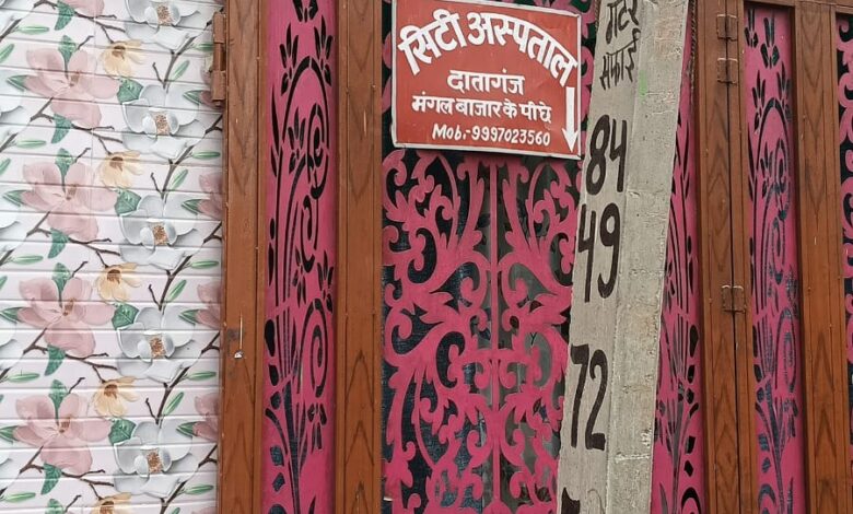 जनपद के दातागंज में संचालित सिटी हॉस्पिटल पर परिजनों ने लापरवाही का आरोप लगाया है। जानकारी अनुसार 37 वर्षीय महिला की मौत हो गई परिजनों ने अस्पताल पर अवैध रूप से संचालित होने और स्टाफ की लापरवाही के कारण महिला की जान लेने का आरोप लगाया। यह घटना शुक्रवार सुबह करीब 5:00 बजे हुई कानपुर गांव निवासी अजय कुमार ने पत्नी कुसमा देवी को बृहस्पतिवार शाम डिलीवरी के लिए इसी निजी अस्पताल में भर्ती कराया था परिजनों का आरोप है कि यह अस्पताल कई सालों से अवैध रूप से चल रहा है लेकिन जिम्मेदार आला अधिकारी कोई कार्रवाई नहीं कर रहे हैं मौजूद महिला डॉक्टर ने मरीज को भरती करने के लिए मोटी रकम जमा करवाई थी और इलाज की गारंटी भी दी थी रात करीब 2:00 बजे डिलीवरी के बाद सुषमा देवी की तबीयत अचानक बिगड़ने लगी जब महिला की तबीयत ज्यादा खराब हुई तो परिजनों ने उसे दूसरे अस्पताल ले जाने की गुहार लगाई हालांकि अस्पताल स्टाफ ने मुख्य गेट पर ताला लगा दिया और उन्हें बाहर नहीं जाने दिया इसी दौरान तड़पते तड़पते महिला ने दम तोड़ दिया महिला की मौत के होने के बाद परिजनों ने अस्पताल में जमकर हंगामा किया और स्टाफ पर लापरवाही तथा व्यवहार का आरोप लगाते हुए कार्रवाई की मांग की दातागंज कोतवाली ने बताया कि उन्हें तहरीर मिली है जिसके आधार पर जांच कर कार्रवाई की जाएगी इस संबंध में सिटी अस्पताल की ऑनर से संपर्क करने का प्रयास किया गया लेकिन उनका फोन स्विच ऑफ आ रहा था
