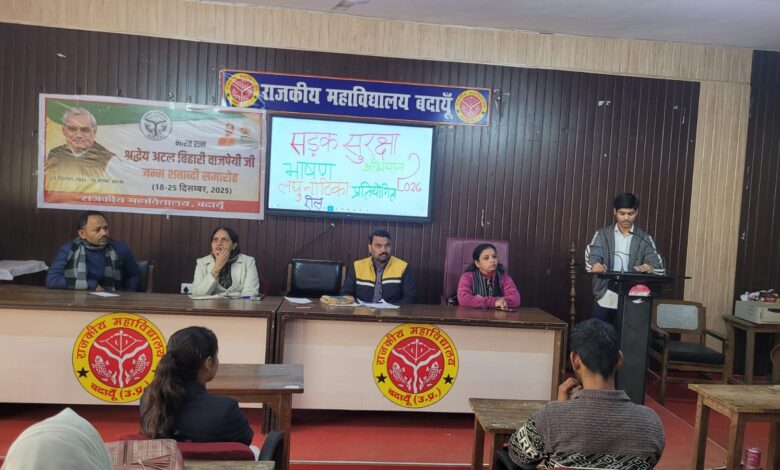 आवास विकास स्थित राजकीय महाविद्यालय बदायूं में उत्तर प्रदेश शासन के द्वारा चलाए जा रहे सड़क सुरक्षा माह के अंतर्गत राष्ट्रीय सेवा योजना की इकाइयों के द्वारा महाविद्यालय स्तरीय भाषण, लघु नाटिका एवं रील मेकिंग प्रतियोगिता का आयोजन किया गया। प्राचार्य लेफ्टिनेंट डॉ श्रद्धा गुप्ता की अध्यक्षता में संपन्न हुए कार्यक्रम में सड़क सुरक्षा से संबंधित यातायात के नियमों और दुर्घटना के कारण एवं बचाव पर छात्र छात्राओं ने अपने विचार व्यक्त किए।
