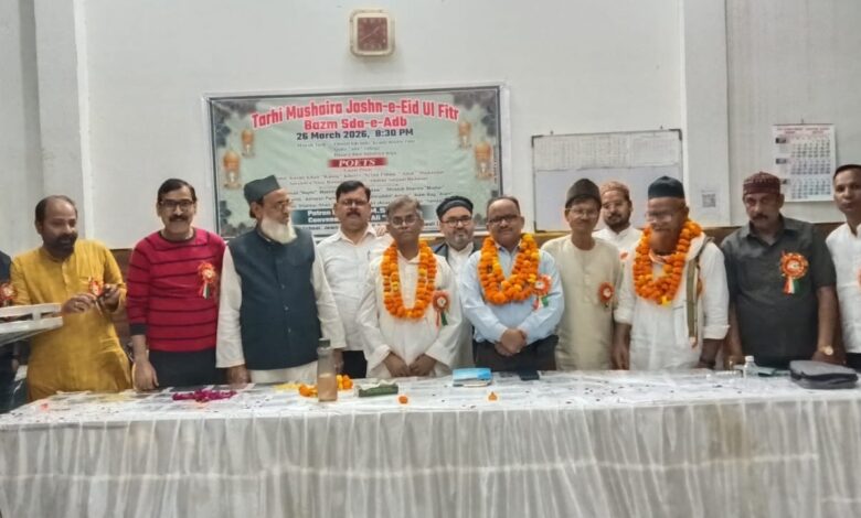 बीती रात बज़्म ए सदाए अदब की जानिब से जश्ने ईदुल फित्र मनाते हुए एक तरही मुशायरा एम जे आर पब्लिक स्कूल ज़मीर मंज़िल पर समाज सेवी व व्यवसायी हाजी एम सग़ीर की अगुवाई में मुनक्किद हुआ। जिसका मिसरा ए तरह था