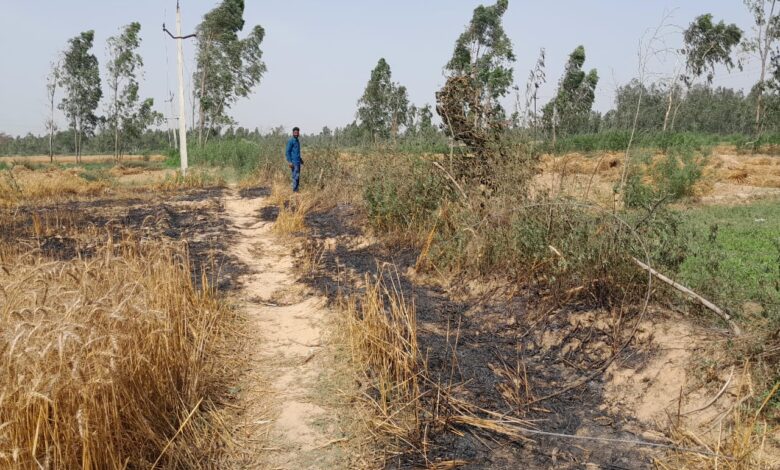 बिजली का तार टूटने से गेहूं की फसल में लगी आग, बुझाने पहुंचा किसान झुलसा
